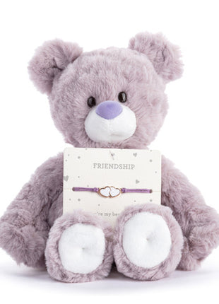 Get ready to bear-hug your friends with our Friendship Purple Bear! This 8in cuddly bear comes with a sparkly wearable... Read more