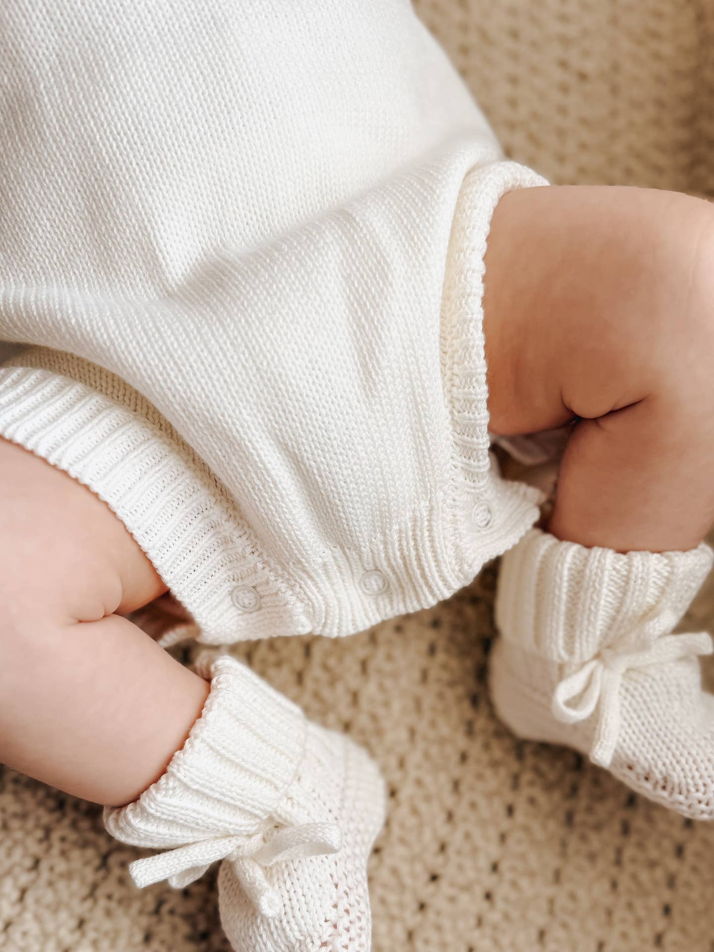 Keep your baby's tiny toes warm and stylish with these Knit Booties in Cloud! Made from eco-friendly organic cotton, these... Read more