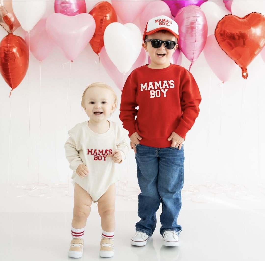 Get cozy and stylish with the Mama's Boy Sweatshirt - the perfect way to show off your bond with Mommy!... Read more