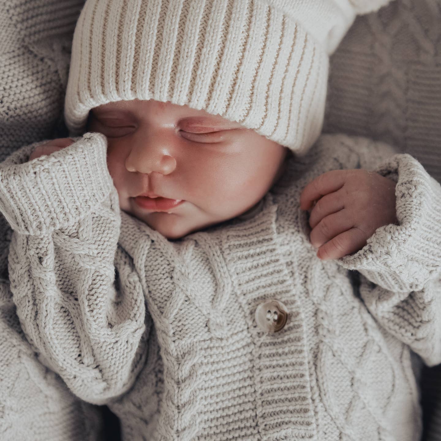 Add a touch of fun and sustainability to your little one's ensemble with our Pom Beanie! Crafted with love from 100% organic cotton, it's gentle on the skin and the environment. The super fluffy pom adds a playful touch and bounces with every move. Available in Cream to match our other styles. (Care: Cold wash with like colors.)