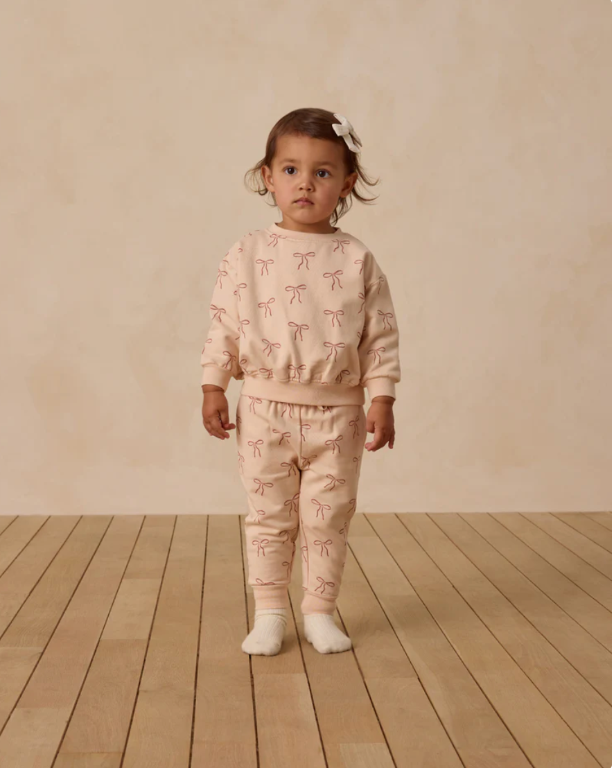 Cozy up in our Relaxed Fleece Sweatpants, made with 96% organic cotton for ultimate comfort. Complete the look with its essential counterpart, the Relaxed Fleece Sweatshirt, featuring a whimsical ‘red bows’ print. Stay warm and stylish in our ‘antique’ hue. Machine washable.