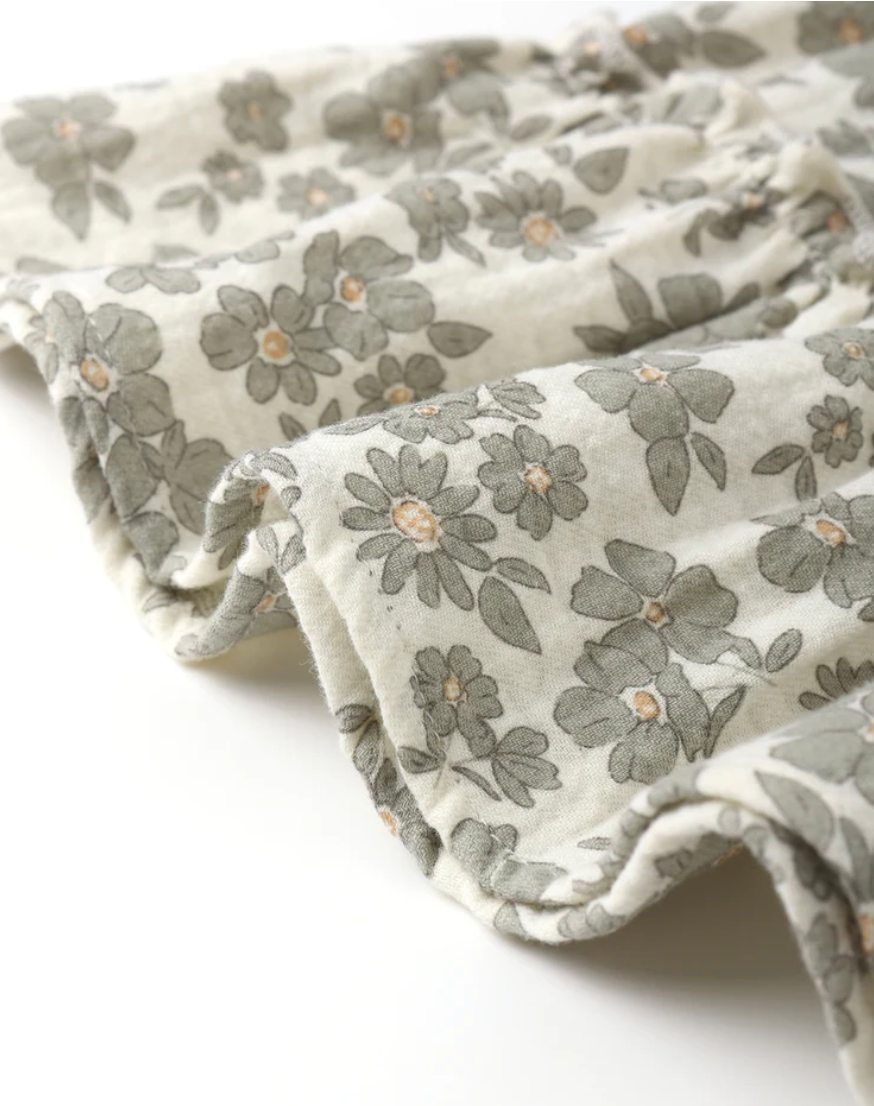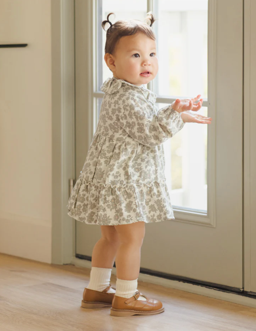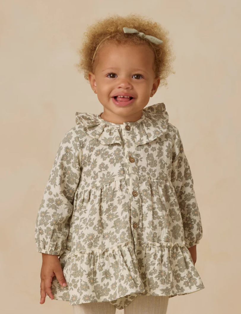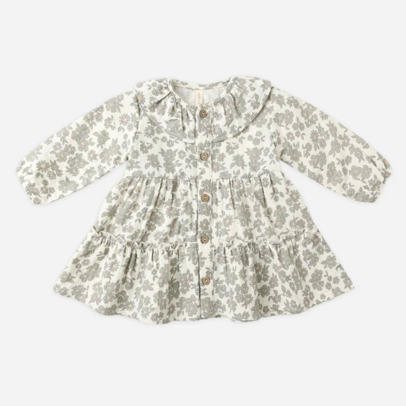 Ruffle Collar Button Dress || Green Floral