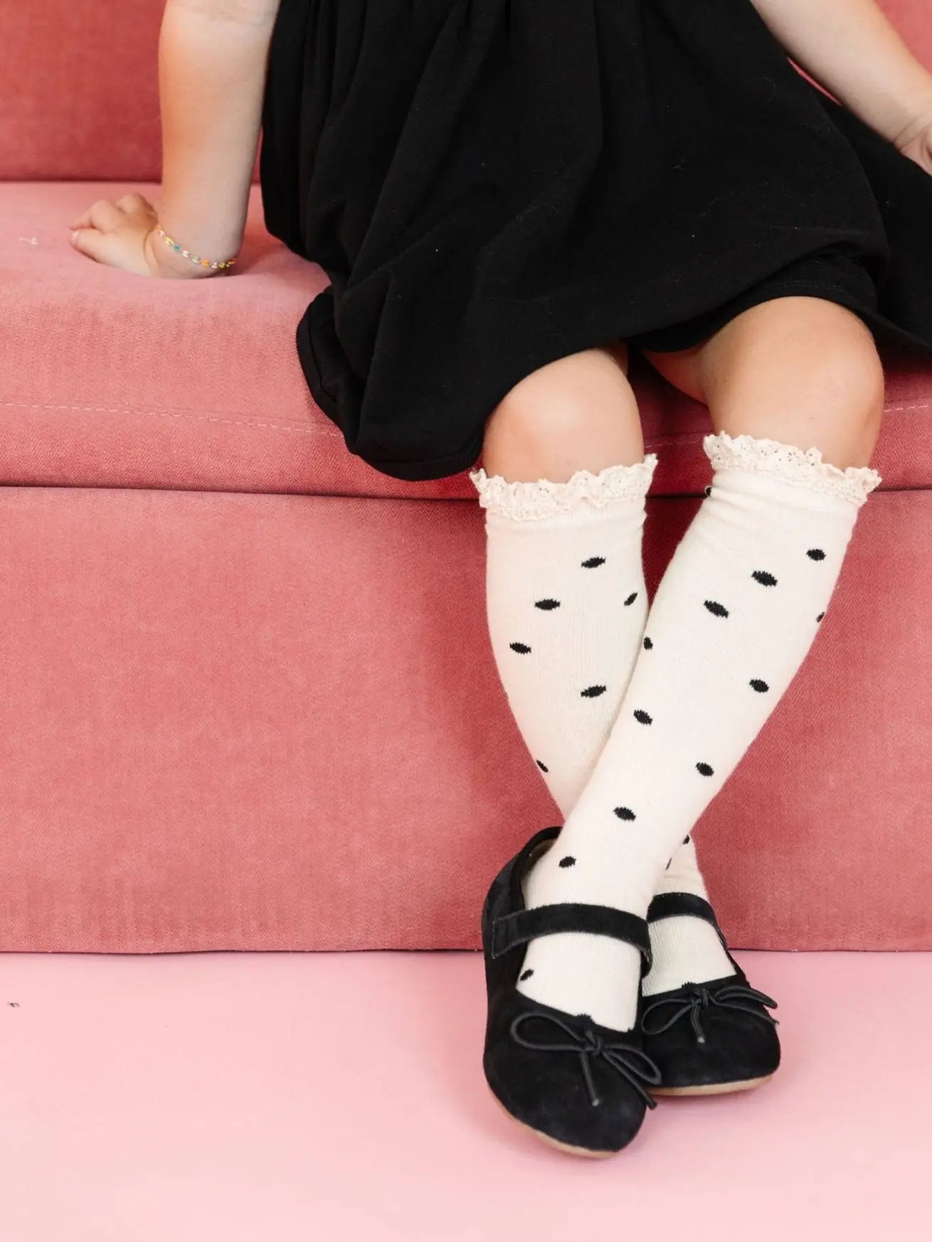 Vanilla Dot Lace Top Knee High Socks