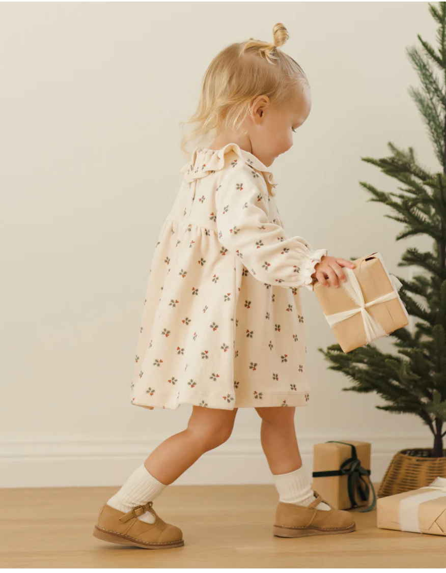 Introducing our Velour Baby Dress in the charming ‘holly berry’ print on a natural hue. This dress features an empire... Read more